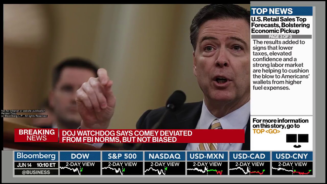 Bloomberg Reports the former FBI Director James Comey broke from FBI procedures and overstepped his authority in the Clinton email investigation according to the Department of Justice’s Inspector General. Be sure to like, subscribe, and comment below to share your thoughts on the video. Subscribe for the latest on the Democrats’ hypocrisy, media bias and punditry, and coverage of President Trump’s accomplishments: http://www.youtube.com/subscription_center?add_user=GOPICYMI Already subscribed? Be sure to click the YouTube bell located above to be notified each time we upload a new video. ****** Follow Us! Official RNC Research Twitter: twitter.com/RNCResearch RNC Research Director, Mike Reed: twitter.com/reed1311 RNC Research Deputy Director, Scott Parker: twitter.com/Scottty_P For regularly updated blog posts from RNC Research, visit gop.com/research/